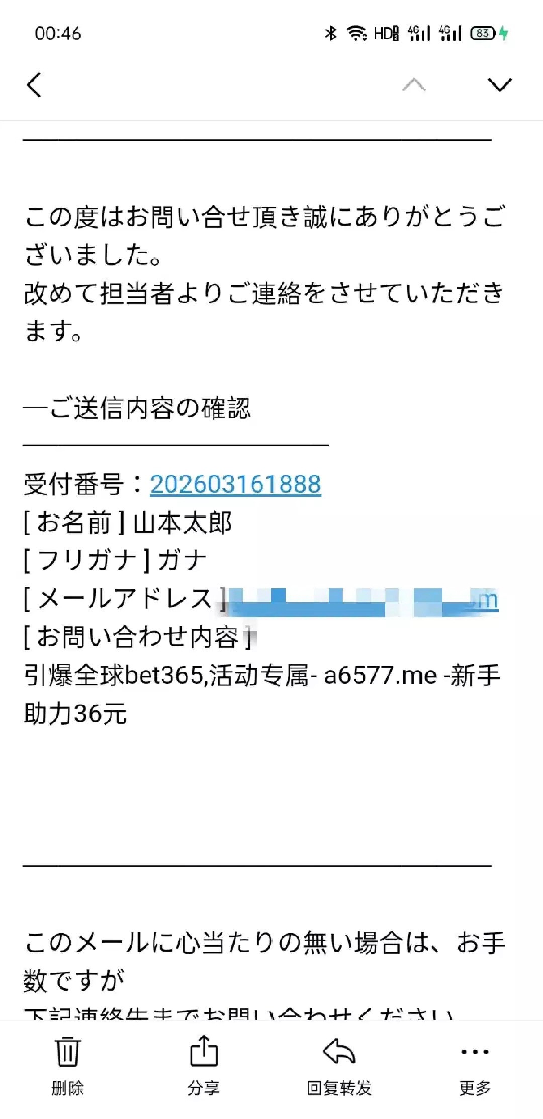 网址 a6577. me 好像要查的!自己看自己的邮箱有没有这个信息